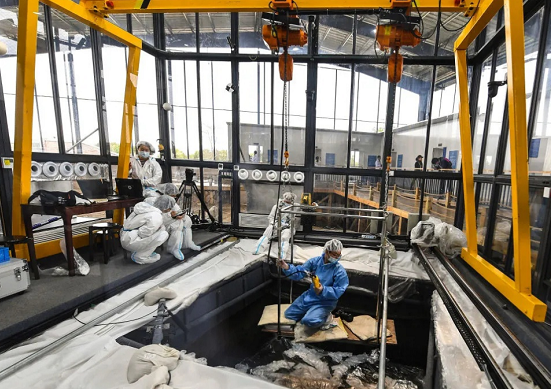 采用移動龍門吊和電動葫蘆的這種挖掘提取的方式對這些古文物起到了很好的保護效果。